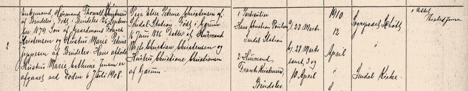 Sønnen Evald bliver plejebarn hos August Jensen og Antonette Jacobine. Arne bliver hos Thorvald. Den 12. april 1910 bliver Thorvald Kristensen gift med Elise Petrine Christensen i Sindal Kirke: