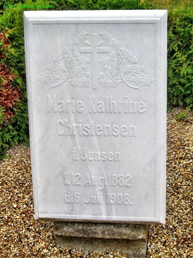 Marie Katrine Jensen blev født den 12. august 1882 og er datter af Christian August Jensen og Antonette Jacobine Jacobsen der ejer Præstegaard i Bindslev. Den 27. oktober 1903 bliver Marie Katrine gift med Thorvald Kristensen og de bosætter sig på gården Hedelund lidt syd for Marie Katrines fødehjem. Det er her børnene kommer til verden: Arne i 1905 og Evald i 1906. Og det her her Marie Katrine bliver syg af tuberkulose og dør den 6. juli 1908. Hun blev 25 år gammel.